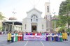 Nam, nữ công chức, viên chức quận Gò Vấp diễu hành áo dài tại Nhà thờ Hạnh Thông Tây, quận Gò Vấp.