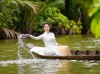 Vẻ đẹp kín đáo của người phụ nữ trong trang phục áo dài truyền thống. Ảnh chụp tại Khu du lịch Bình Quới, quận Bình Thạnh, Thành phố Hồ Chí Minh.