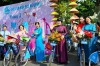 Nụ cười rạng ngời của hội viên Hội Liên hiệp Phụ nữ Quận 5 trong chương trình diễu hành áo dài trên đường phố.