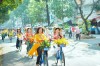 Hội viên phụ nữ trong chương trình diễu hành xe đạp và hoa tại Quận 5 nhân kỷ niệm Ngày Quốc tế Phụ nữ 8/3.
