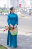 Vẻ đẹp trang nhã của người phụ nữ Việt Nam trong tà áo dài khi thả bộ trên phố.