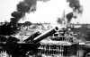 Tháng 1 năm 1967, địch mở cuộc hành quân mang tên Cedar Fall (bóc vỏ trái đất) được sự yểm trợ của máy bay, xe tăng, thiết giáp, pháo binh, đánh phá khốc liệt với ý đồ xới tung đất Củ Chi, lật từng ngọn cỏ để truy diệt hết quân du kích. Ảnh: Trực thăng Mỹ bị bắn hạ trước công sự chiến đấu Củ Chi, năm 1967.