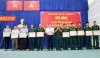 Đại tá Nguyễn Văn Lộc, Bí thư Đảng ủy, Chính ủy Sư đoàn 9 và đồng chí Trương Văn Thống, Thành ủy viên, Bí thư Huyện ủy huyện Củ Chi (thứ 6 và thứ 7 từ phải sang) tặng Giấy khen cho các tập thể hoàn thành tốt đợt phối hợp ra quân làm công tác dân vận năm 2017, ngày 23 tháng 8 năm 2017.