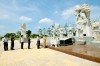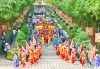 Lễ Giỗ Tổ Hùng Vương - Di sản Văn hóa phi vật thể đại diện của nhân loại được Thành phố Hồ Chí Minh tổ chức trang trọng hàng năm tại Khu tưởng niệm các Vua Hùng - Công viên Lịch sử Văn hóa Dân tộc (Thành phố Thủ Đức) nhằm ghi nhớ công ơn dựng nước và giữ nước của Tổ tiên. Ảnh: Nghi thức dâng cúng bánh Chưng, bánh Tét trong Lễ Giỗ Tổ Hùng Vương.