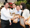 Đồng chí Võ Văn Hoan, Thành ủy viên, Phó Chủ tịch Ủy ban nhân dân Thành phố Hồ Chí Minh và Đồng chí Nguyễn Ngọc Hòa, Chủ tịch Hiệp hội Doanh nghiệp Thành phố trao giải thưởng cho các doanh nghiệp tại Lễ tôn vinh và trao danh hiệu Doanh nghiệp xanh Thành phố Hồ Chí Minh năm 2023.