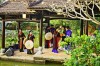 Du khách thưởng thức trái cây trong không gian văn hóa miệt vườn đậm chất Nam Bộ tại huyện Cái Bè, tỉnh Tiền Giang.