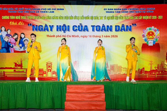 Ngày đăng: 25/03/2026(HCEC) - Nhằm chào mừng thành công của cuộc bầu cử đại biểu Quốc hội khóa XVI và đại biểu Hội đồng nhân dân các cấp nhiệm kỳ 2026 – 2031, Trung tâm Văn hóa và Triển lãm Thành phố Hồ Chí Minh tổ chức chuỗi chương trình nghệ thuật tuyên truyền phục vụ nhân dân trên địa bàn Thành phố.