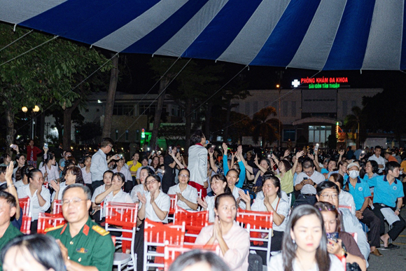 Đại biểu và đông đảo người dân tham dự chương trình nghệ thuật tuyên truyền chào mừng bầu cử đại biểu Quốc hội khóa XVI và đại biểu Hội đồng nhân dân các cấp nhiệm kỳ 2026 – 2031 tại Khu Cnhế xuất Tân Thuận, phường Tân Thuận.