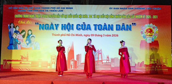 Ngày đăng: 09/03/2026(HCEC) - Tối ngày 09/3/2026, tại Khu Chế xuất Tân Thuận, phường Tân Thuận, Trung tâm Văn hóa và Triển lãm Thành phố Hồ Chí Minh đã tổ chức chương trình văn nghệ tuyên truyền chào mừng bầu cử đại biểu Quốc hội khóa XVI và đại biểu Hội đồng nhân dân các cấp nhiệm kỳ 2026 – 2031.